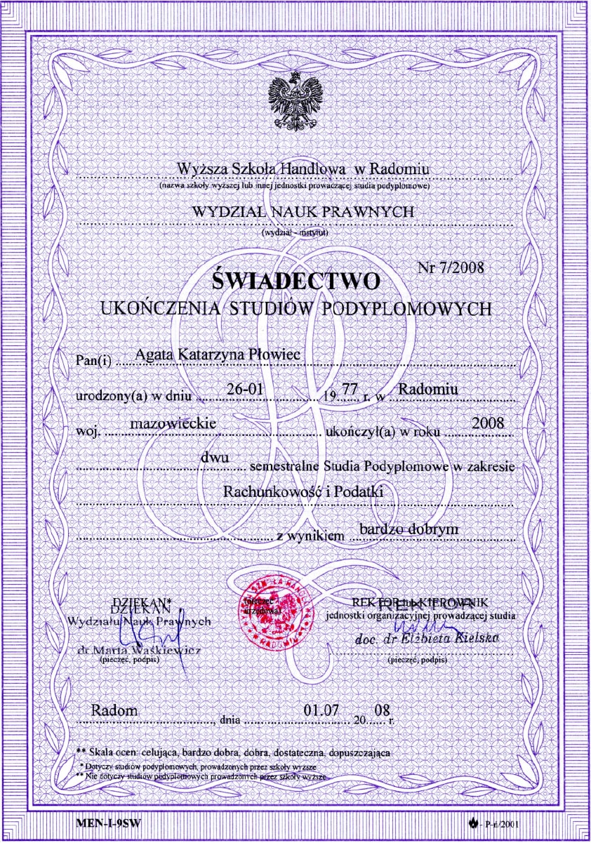 Posiadam szerokie i wszechstronne przygotowanie akademickie, które wspiera moją pracę w rekrutacji i zarządzaniu personelem medycznym oraz finansami w sektorze ochrony zdrowia. Wśród najważniejszych etapów mojego wykształcenia znajdują się: