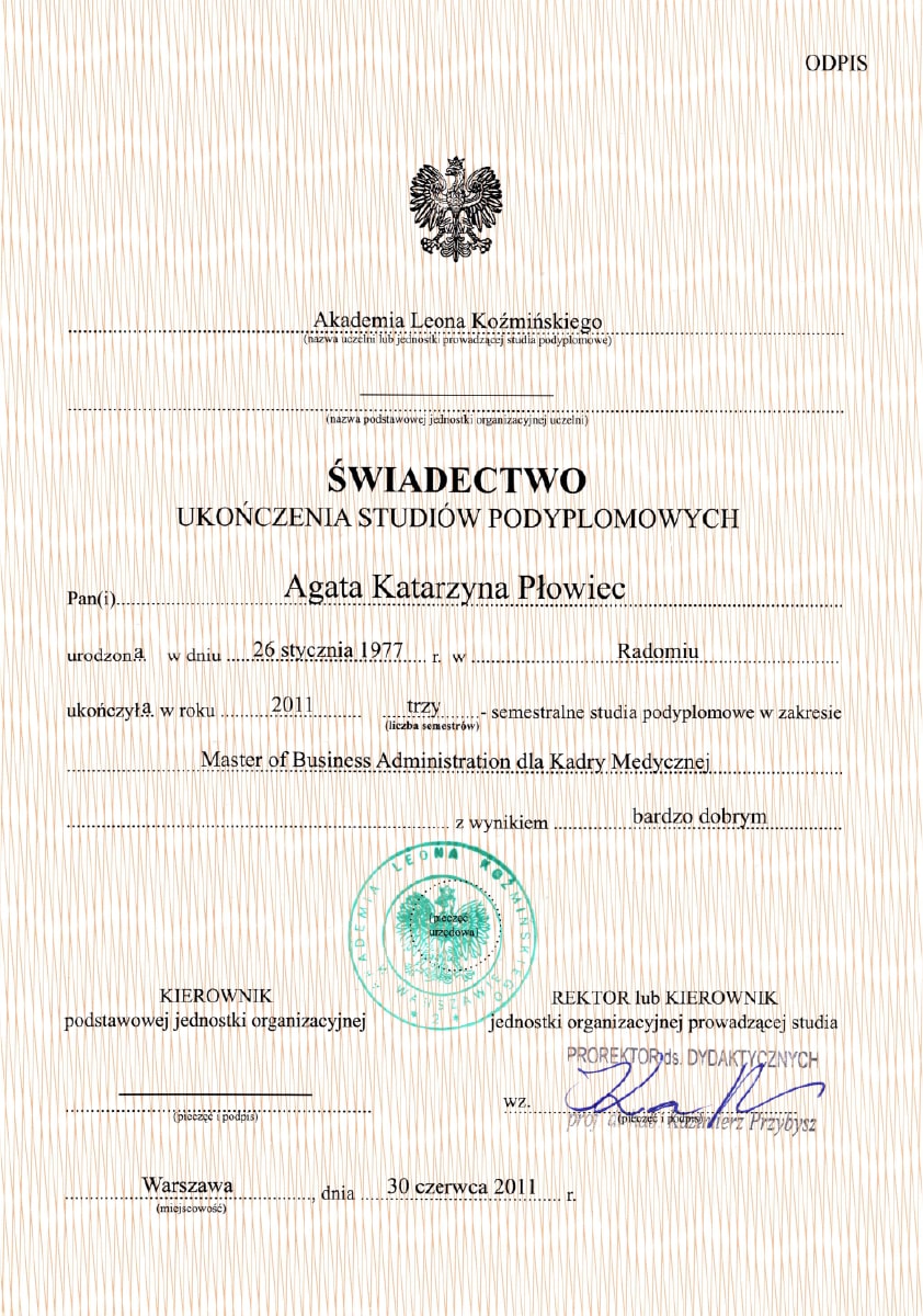 Dzięki temu wykształceniu łączę praktyczne doświadczenie z solidną bazą teoretyczną, co pozwala mi skutecznie wspierać placówki medyczne w zarządzaniu personelem i procesami organizacyjnymi.